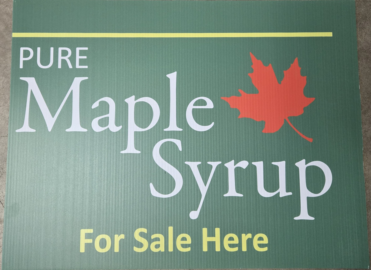 - PURE MAPLE SYRUP FOR SALE HERE, Green Corrugated Plastic Sign 24" x 18"